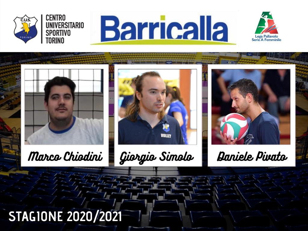 Il BARRICALLA CUS TORINO VOLLEY completa lo staff tecnico con Chiodini, Pivato e Simolo