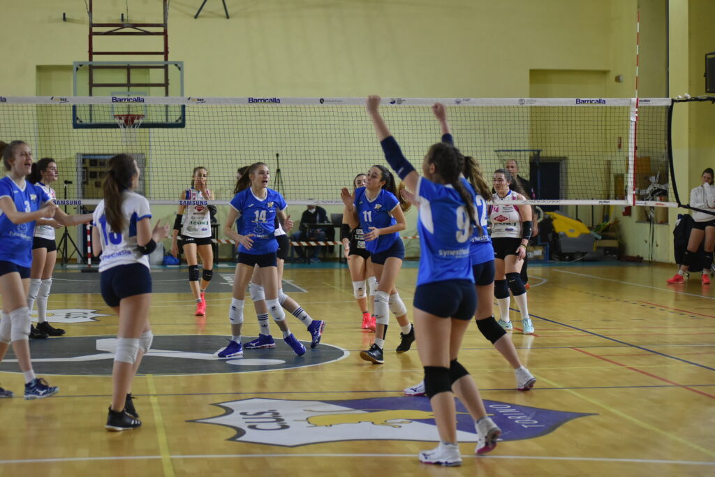 Lotta punto a punto nei primi due set dove, a seguito di infortunio, Adji Ndoye è costretta ad abbandonare il campo sostituita da Alice Benenti e successivamente da Chiara Giovale. Le nostre cussine vincono ai vantaggi 28-26 e 26-24. Non c’è storia invece nel terzo set in cui grazie a un ottimo turno in servizio di Giovale le giovani cussine acquisiscono la fiducia necessaria per portare a casa la vittoria con un netto 25-14. Da evidenziare l’ingresso in doppio cambio di Giulia Russi e Alessandra Gerbaudo sfruttato positivamente in tutti e tre i set.